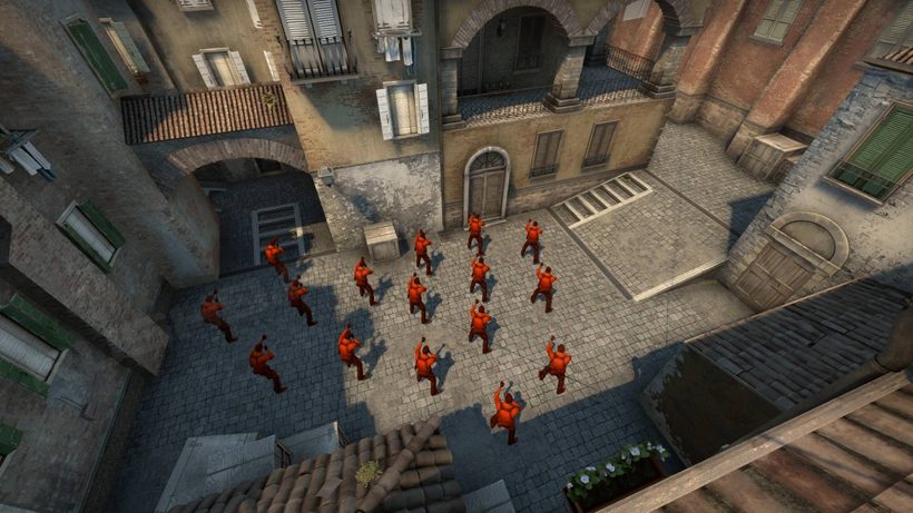 本期展示了Inferno的T出生点,你可能会注意到CSCO版比1.6要小一些,原因是出生地的右侧出口前往侧道(Alt Mid)明显更花时间,导致很少人走这,所以CSCO团队将T家缩小以充分利用两个出口。