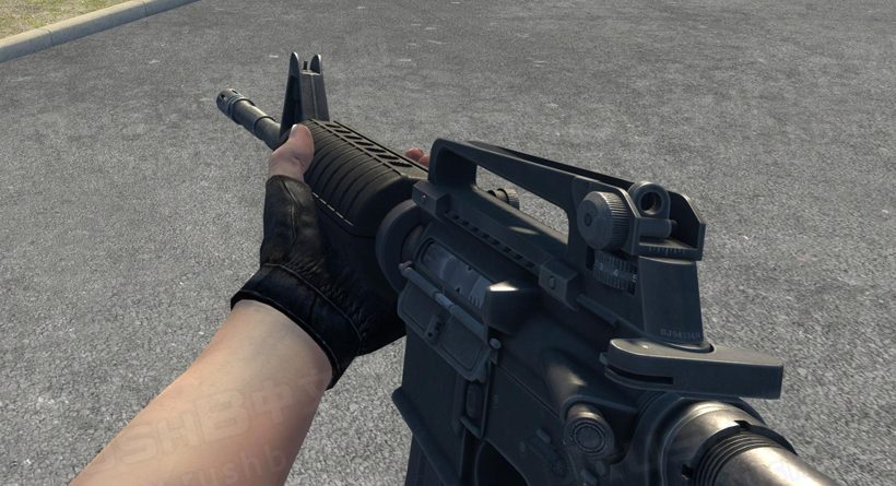 CSCO版M4A1,默认情况下和CS 1.6/起源一样没有装备消音器,但点击右键可快速装备。另外消音器模型和动画仍在制作中。