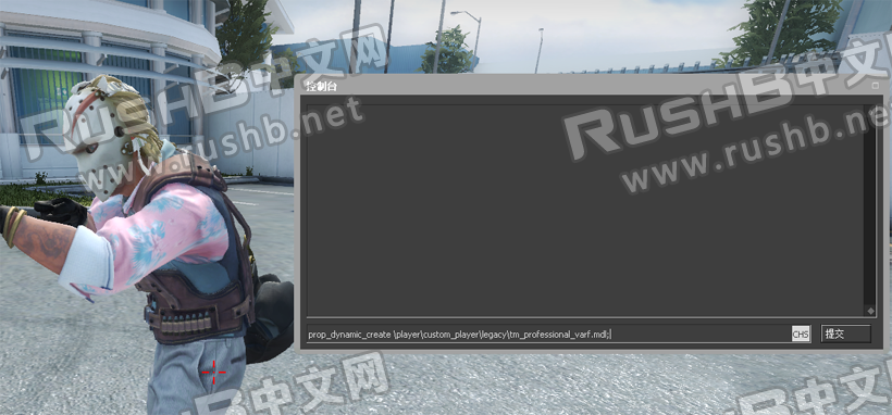 配合模型生成指令prop_dynamic_create,我们将以下指令输入到控制台:prop_dynamic_create \player\custom_player\legacy\tm_professional_varf.mdl;