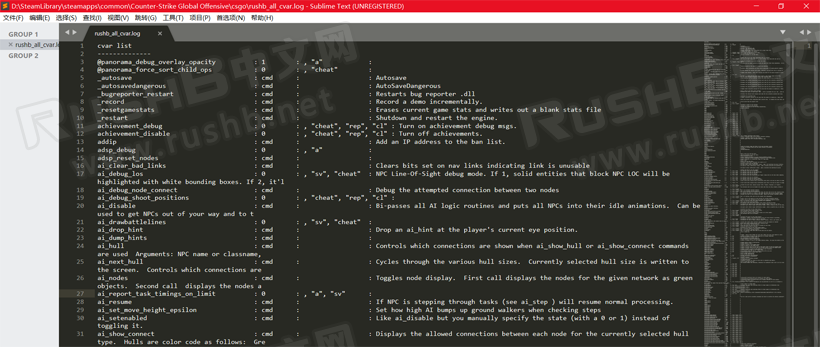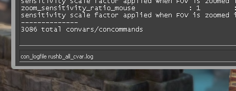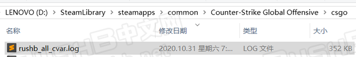 但无需担心,我们可以将指令列表保存为文件形式,在控制台输入:con_logfile rushb_all_cvar.log