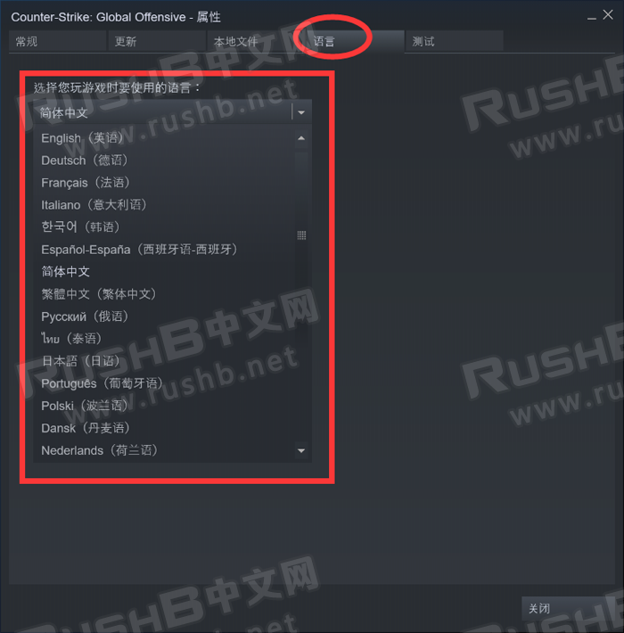 然后在属性窗口中点击“语言”,在下拉框选择需要的语言种类,之后启动游戏既是想要的语言。