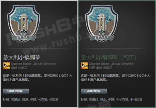 另外系列收藏胸章胶囊有实体商品,玩家可以在Major大赛现场或是V社商店、国服军需商店(不一定有货)购买,实体胶囊除了开出来的实体胸章,还附带CDkey激活码,可在Steam客户端激活额外获得一枚“纯正”胸章进入CSGO库存,纯正胸章除了名称有纯正两字和颜色是绿色的,其他外观和普通版一致,不过激活后的纯正胸章无法交易出售,普通版可以。
