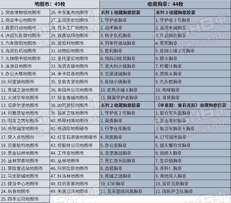 其中,玩家最容易获得的是各系列收藏胸章,只要有钱,就可以获得。虽然收藏胸章有普通和纯正两种,但这里本文只算其中一种,玩家可以直接购买获得44枚徽章。Major纪念奖牌和大行动挑战币、服役勋章,只要每年都参与理论上也能集齐,如果没有错过的话这三类徽章一共可获得31枚。至于老兵硬币和忠诚徽章,老玩家基本都有。