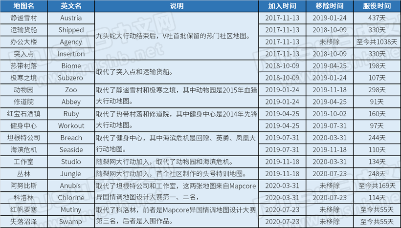 以下为九头蛇大行动结束后至今加入又被轮换的社区地图: