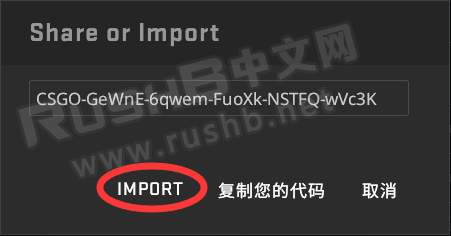 获得准星代码后,将准星代码粘贴到输入框内,然后点击“IMPORT/导入”按钮即可使用新的准星。