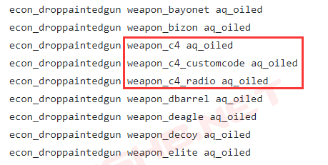 自定义密码C4和无线电C4曾在give_all_items.cfg脚本文件中提到,武器代码分别为“weapon_c4_customcode”和“weapon_c4_radio”,前者能够自定义下包密码(现有C4密码为7355608),后者可能是能够远距离引爆C4。
