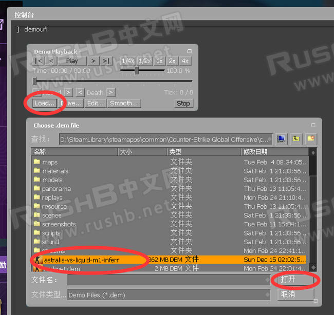 这里以HLTV下载的GOTV比赛DEMO为例,已经放到CSGO根目录: