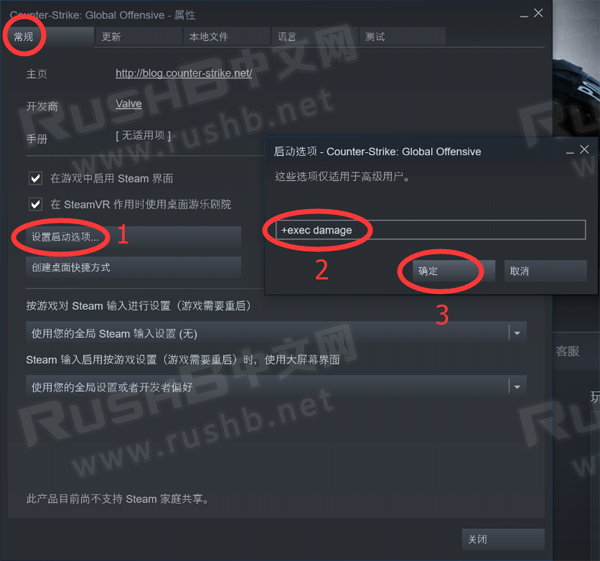 然后在属性窗口——点击“设置启动选项”——输入“+exec damage”——点击确定