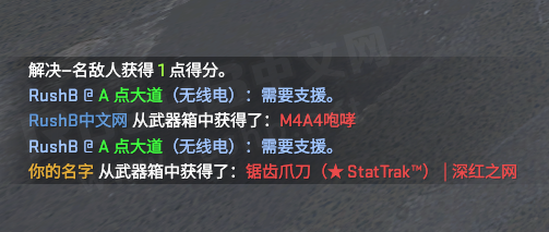 playerchatwheel RushB.net "你的名字 从武器箱中获得了:皮肤名";