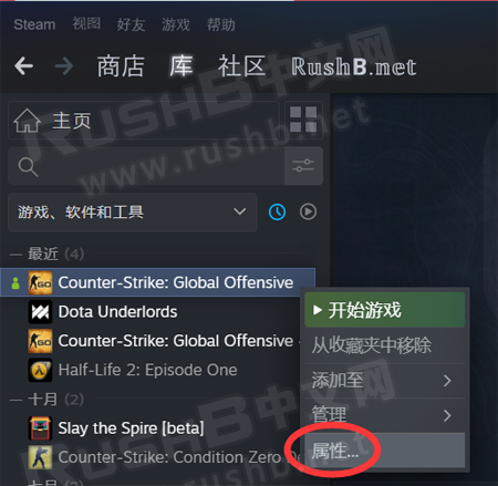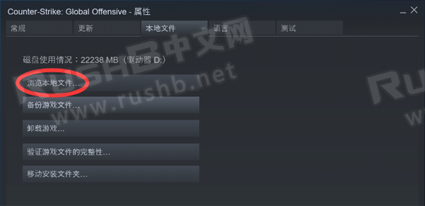 在Steam CSGO属性窗口中——本地文件——点击浏览本地文件: