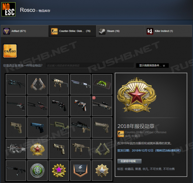 CSGO目前已知获得红色2018服役勋章(最高级第6转)的玩家有一人,名叫Toddy,具体可以见他的Steam库存: