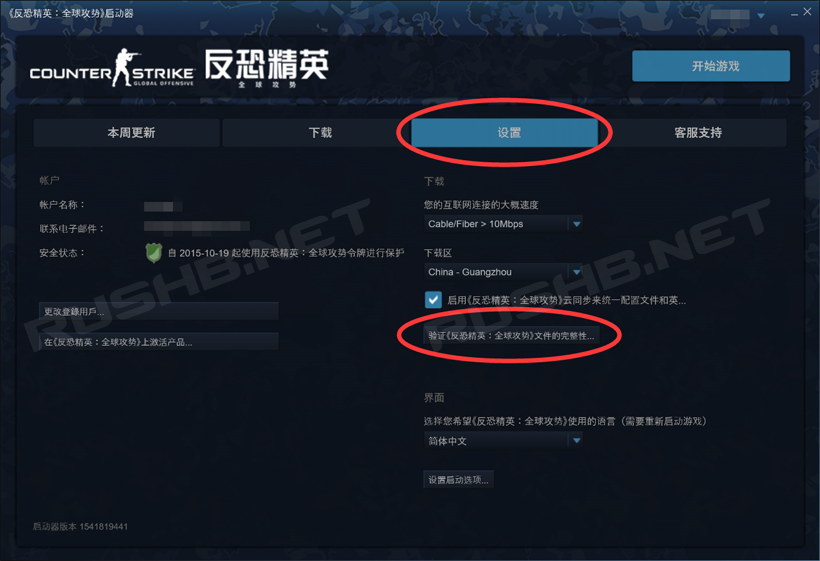 同理,打开CSGO国服启动器——“设置”——“验证《反恐精英:全球攻势》文件的完整性”,之后进行验证,并等待下载缺失的文件即可。