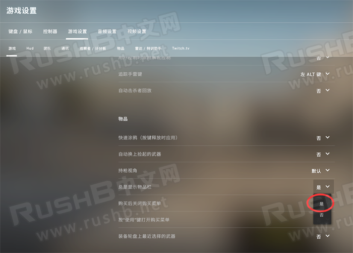 打开游戏,点击齿轮图标,进入“游戏设置”——“游戏”——“物品”——“总是显示物品栏”,选择“是”即可,这样在游戏中右下角武器及手雷会一直显示在屏幕里。