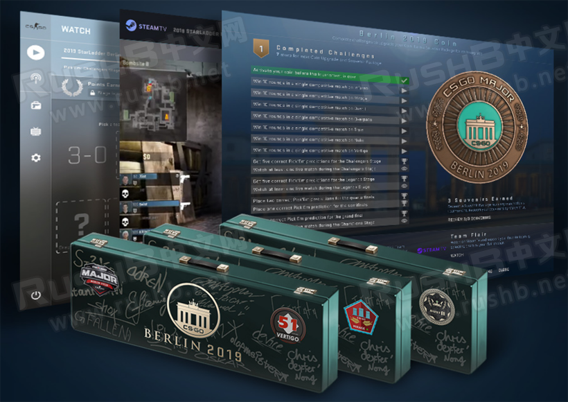 CSGO Major大赛StarLadder柏林2019通行证已正式发布, 注意,本届通行证内容与上届卡托维兹有些不同,包括纪念包兑换次数、挑战任务等,具体请看以下内容: