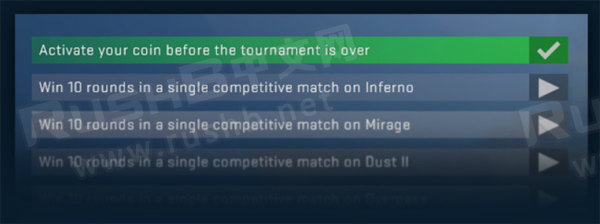 激活通行证、完成Pick’Em预测、游戏回合和观看整个Major比赛任务来升级你的赛事硬币。