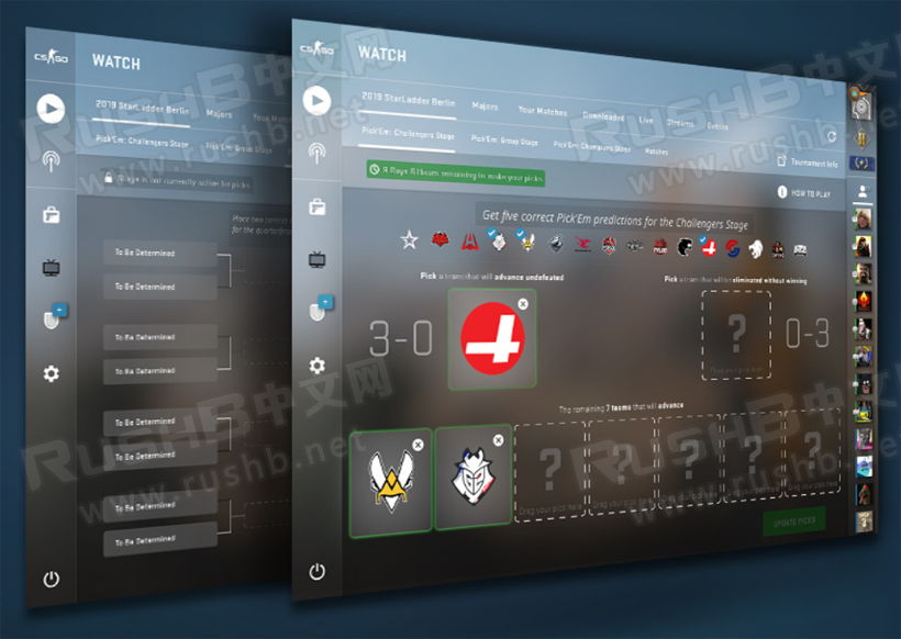 激活你的通行证以进入Pick’Em挑战,预测哪些队伍会在哪些阶段晋级,以此完成赛事硬币升级。记得密切关注队伍并及时明智做出选择。