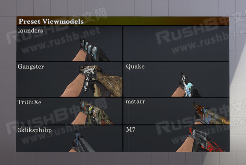另一个是几个预设持枪视角,来自多位CSGO知名玩家: