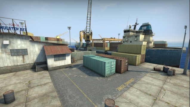 虽然De_Port是官方地图,不过由于不平衡且过于开放,并不太受欢迎。作者将CSGO版De_Port移除了部分地图功能来改进平衡性,比如在船上放置了货柜箱提高了更多掩体。