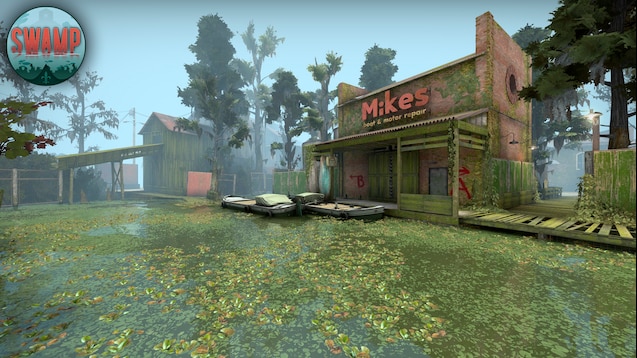 顾名思义,这是一张以沼泽为主题的CSGO地图,作者是Morozov和BubkeZ,地图背景是以曾靠木材发展又没落的工业区,后被绿色植物也动物接管的大片沼泽。支持死亡竞赛和经典模式。