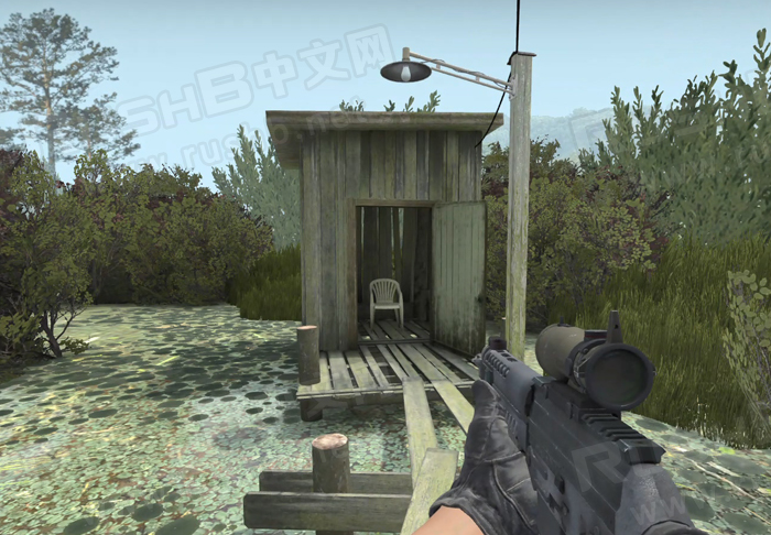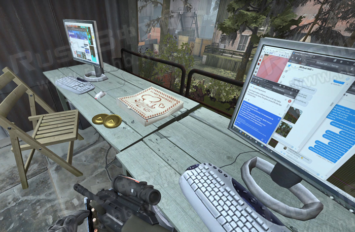 在CT至B点附近,左边2楼有一间没有窗户的房间,玩家可通过飞天指令前往,这里摆放着两台电脑。其中左边显示屏显示的是失落沼泽在Mapcore异国情调地图设计大赛2019参赛页面,而右边则是两位作者MOROZOV和BubkeZ制作地图时的交流截图,甚至用上了谷歌翻译。另外,这里在某次更新还加上了失落沼泽地图币,以示炫耀。