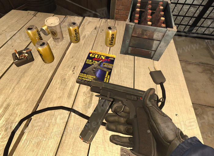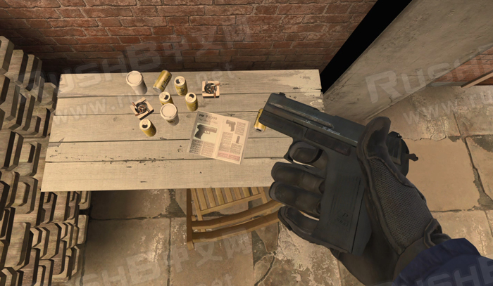 回到刚才的桌子,上面还有一本枪械杂志,封面是CZ75 自动手枪。另一本则是在T进攻A点路线的房间内,展开页面显示的是HK P2000。