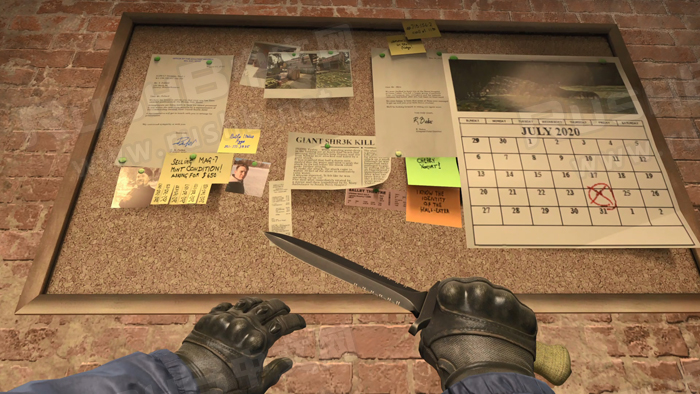 在地图中路,墙上可以看到凤凰标志,而在左边房间里的桌子上,还能看到核子危机和失落沼泽的地图和照片,可见这里早已是T凤凰战士的秘密地点。另外在墙上的公示栏,日历上的日期7月24日其实是失落沼泽在CSGO的推出时间。而旁边的两张真人照片,可能是两位作者MOROZOV和BubkeZ(分辨率太低并不是很确定)。