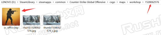 不急着粘贴,将此文件夹内的“cs_office.bsp”改名备份,以便之后还原,然后再把创意工坊或网盘下载的地图文件粘贴于此。
