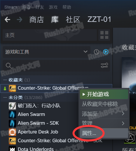 打开Steam客户端(蒸汽平台)——库——CSGO右键——属性