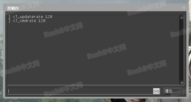 接着,打开游戏,不要进入地图,在开始界面打开控制台输入:cl_updaterate 128 和cl_cmdrate 128