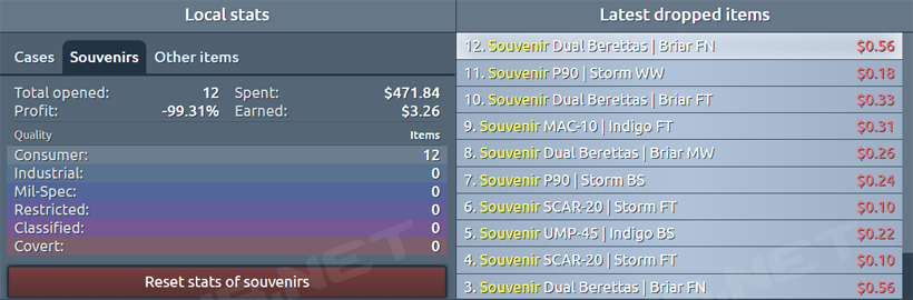 CSGO开箱模拟器convars为玩家提供了所有武器箱、纪念包以及贴纸胶囊(签名/战队除外),采用了CSGO官方概率,并且还原了游戏中的开箱动画和音效体验。还能记录玩家一共开了多少箱子和皮肤及总价值,以让玩家深刻了解开出好皮肤的概率是有多低。