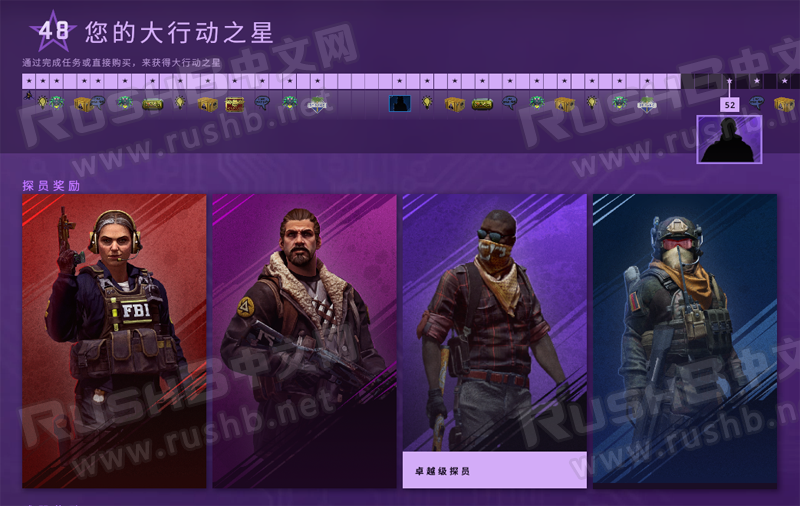 如果你没买大行动之星且之前最低限度任务都完成了的话,本周可以获第二个人物角色皮肤,即卓越级探员(6中1).
