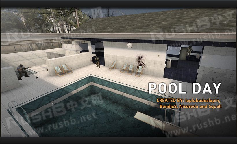 最后,还有一张小型对战地图泳池日/PoolDay,CSGO团队原计划加入这张地图,但最后打消了这个念头。