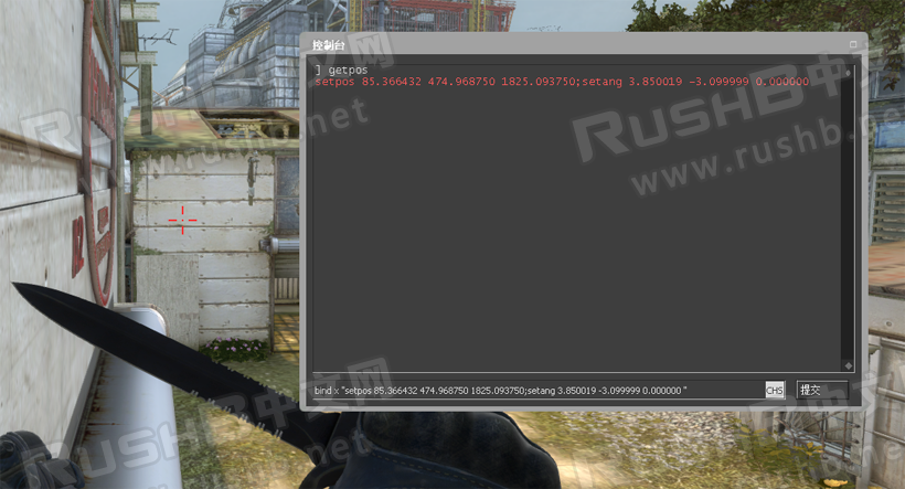 使用方法,控制台输入:getpos,然后控制台会显示玩家的坐标和方向(红字),将整行红字复制,配合按键绑定,比如: