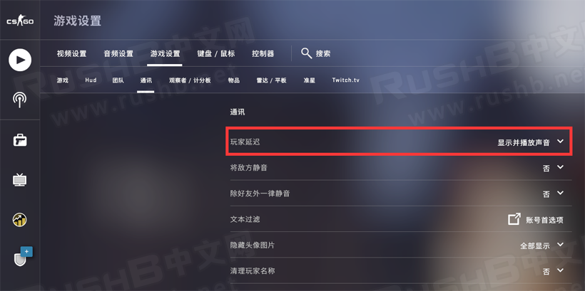 游戏设置——通讯——玩家延迟——显示并播放声音