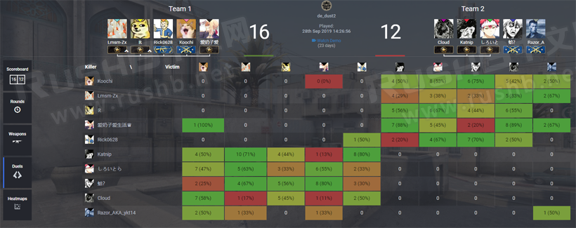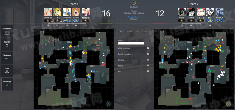 除了战绩,CS:GO Stats能够分析出Demo中所有玩家的详细记录,包括: