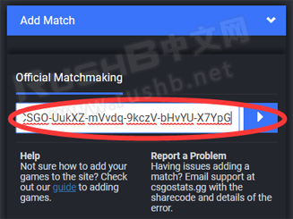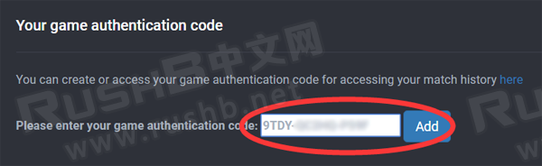 将创建好的游戏身份验证代码复制粘贴到CS:GO Stats网站上,点击“Add”提交。