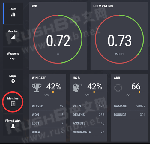 这里会显示通过Demo分析出的个人游戏数据,点击左边栏的“Matches”