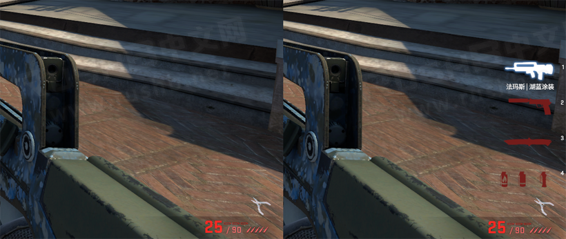 答案很简单,其实就是按键显示物品栏的装备图标,在默认设置下,切换武器后,游戏界面(HUD)并不会一直显示装备图标(主副武器、近战和手雷等)。当玩家想知道身上有哪些投掷物时,只要按下“I”键即可显示装备图标,而不用手动切换武器。