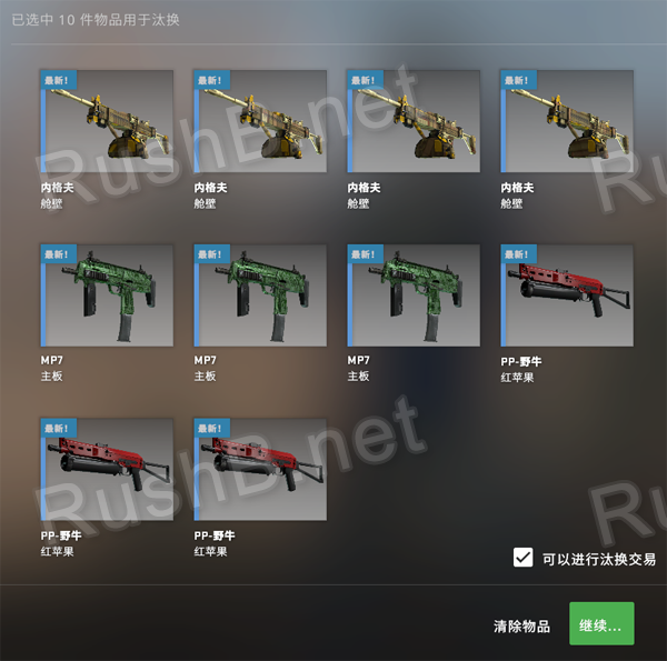新手常见的错误,就是购买了错误的原材料,由于汰换1次需要10件皮肤,大部分玩家花了不少钱才发现无法合成,一买一卖,让G胖赚了不少手续费。
