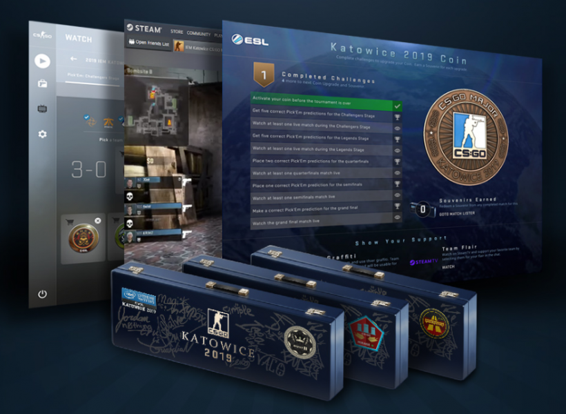 反恐精英:全球攻势(CS:GO)2019年2月7日更新内容,更新包大小125MB,主要内容为更新了Major大赛IEM卡托维兹2019相关贴纸(印花)/喷漆,与以往Major不同,这次新增观众通行证,使用后可获得活动硬币,并能参与比赛预测升级成银币或金币和兑换纪念包。