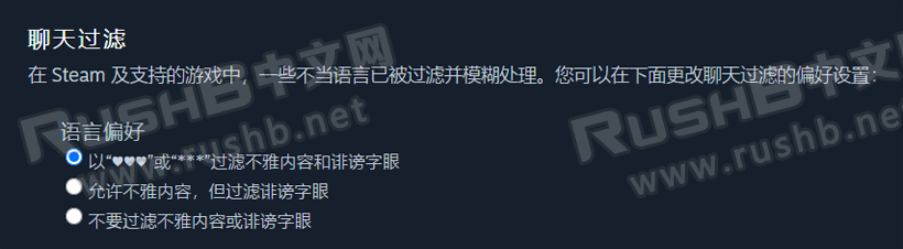 现在文本过滤设置不再是游戏里设置,而是跳转至Steam帐户的偏好设置页面设置。