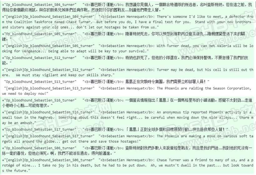 各语言文本更新,但不包括中文,其中繁体中文又再次汉化血猎大行动的任务剧情。
