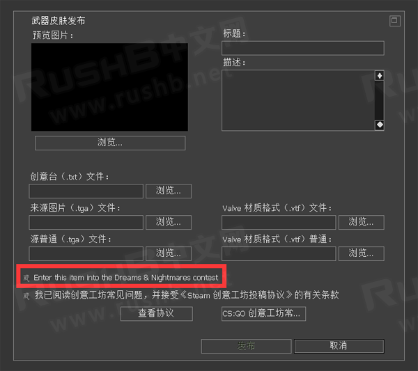 创意工坊皮肤提交界面添加了如梦如画皮肤设计大赛参加选项。