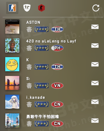 找队友、邀请和赛事栏添加了地区图标(两字母简称)。