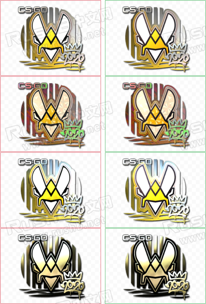 Vitality:普通、全息、闪亮、金色队标黑色线条加粗(左旧右新)