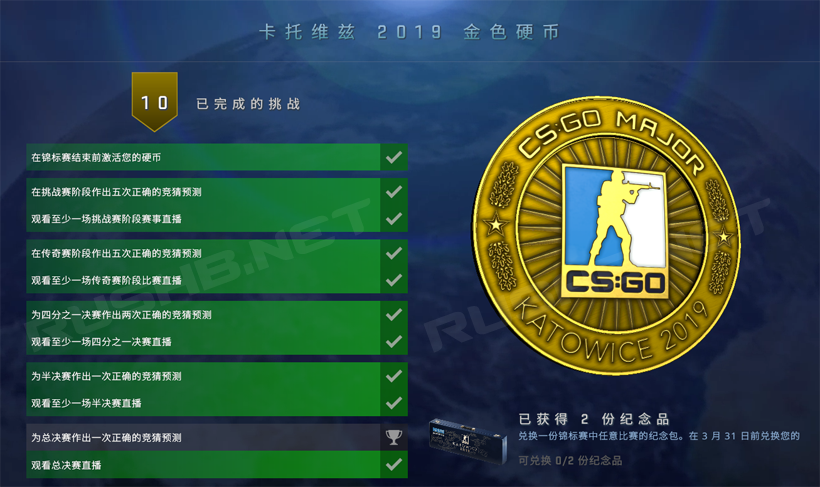和以往不同,只看比赛不能掉落纪念包,想要获得纪念包必须购观众通行证并激活使用,完成指定任务升级硬币才能获得纪念包。如果你之前错过了2月份IEM卡托维兹Major大赛,但想参与StarLadder柏林2019,不妨先了解下