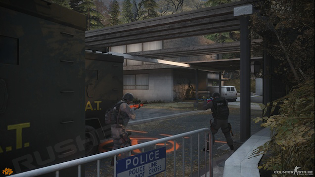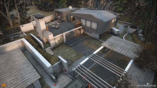 地图背景:T任务失败,在逃跑过程中找到了这家正在装修的别墅,然而两名CT已经追上他们,并挡住了别墅唯一的出口。