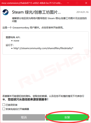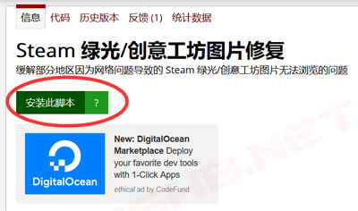 安装完成后打开“Steam 绿光/创意工坊图片修复”脚本安装页面