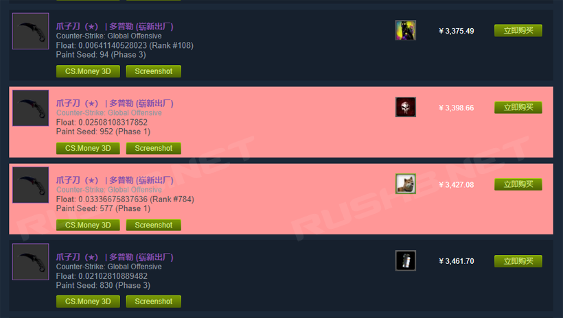 CSGOFloat Market Checker还提供了“高亮显示特色皮肤功能”,玩家可以输入指定数值查找特色皮肤,比如多普勒P1、P2、P3、P4,特殊磨损等等。