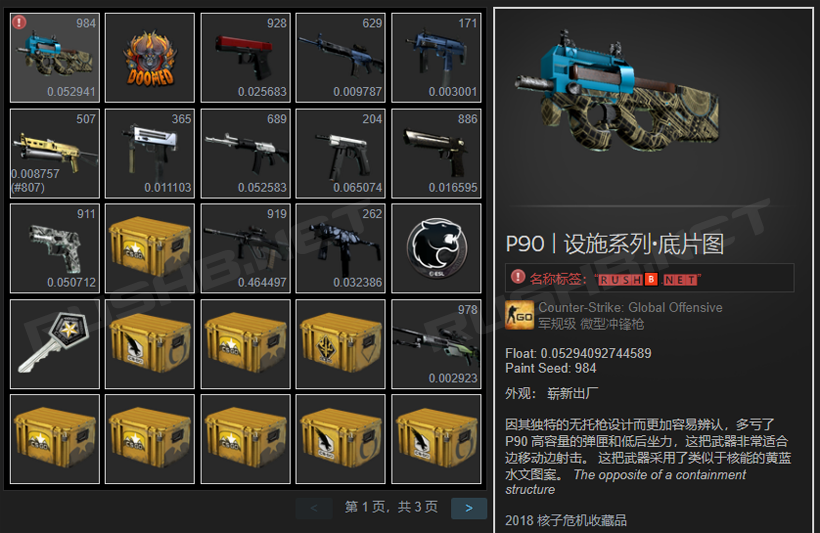 首先我们打开Steam库存,看看有何变化。可以看到,CSGO库存每件皮肤都多了磨损度和图案模板显示,这样就不用每次打开游戏查看了。